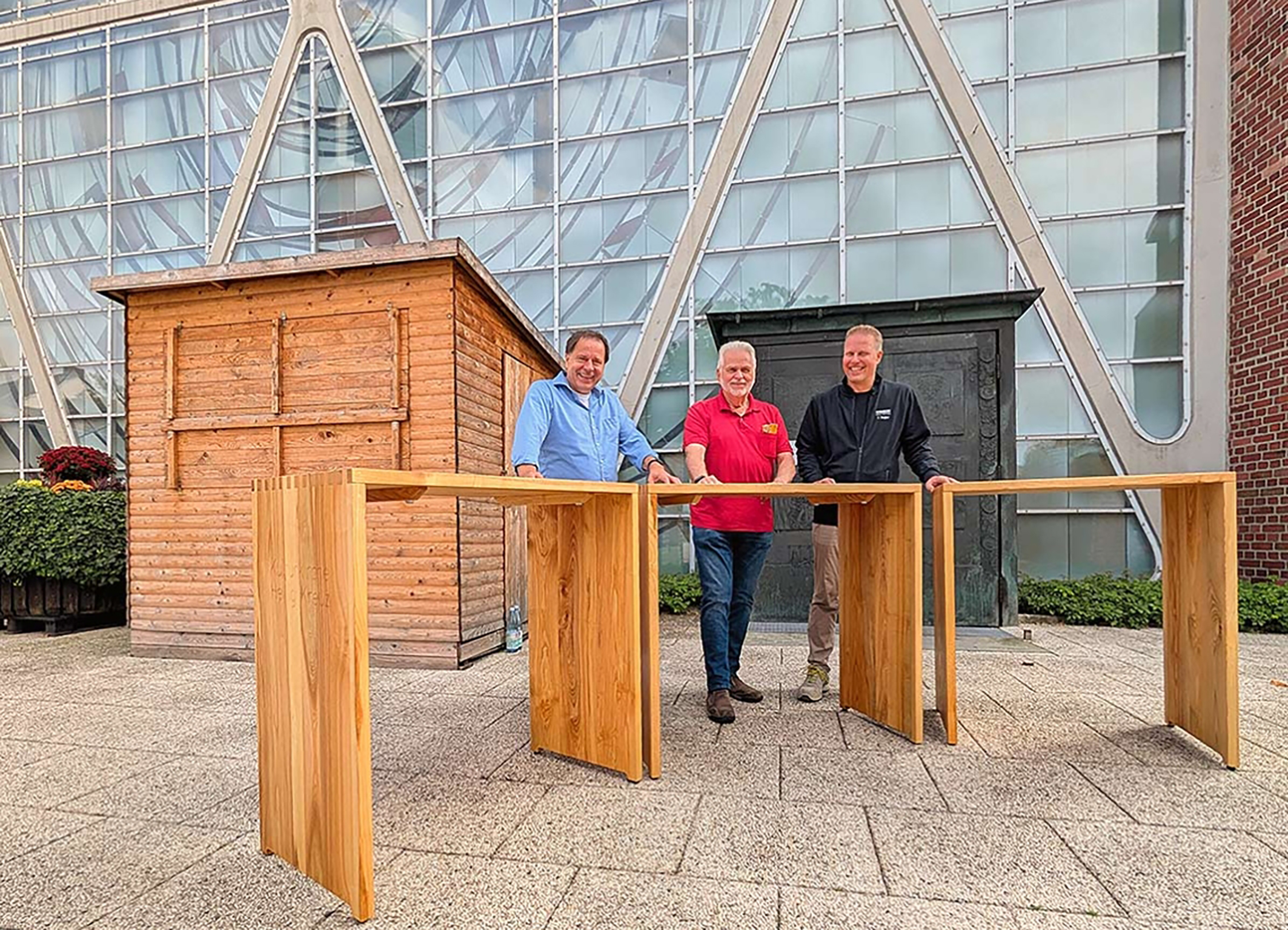 Wir bekamen die ausgemusterten Bänke der umgewandelten Kulturkirche Heilig Kreuz in Bottrop überlassen und entwickelten die Idee, das solide und wertvolle Holz weiterzuverarbeiten. Hieraus bauten wir Stehtische, die wir der Kirche spendeten und die im wandelbaren Nutzungskonzept nun immer wieder ihren Einsatz finden können. Hier verbinden wir als Oberhausener Möbelmanufaktur Tradition und Handwerk mit der Nachhaltigkeit des wiederverwendeten und recycelten Holzes der Kulturkirche Heilig Geist in Bottrop.