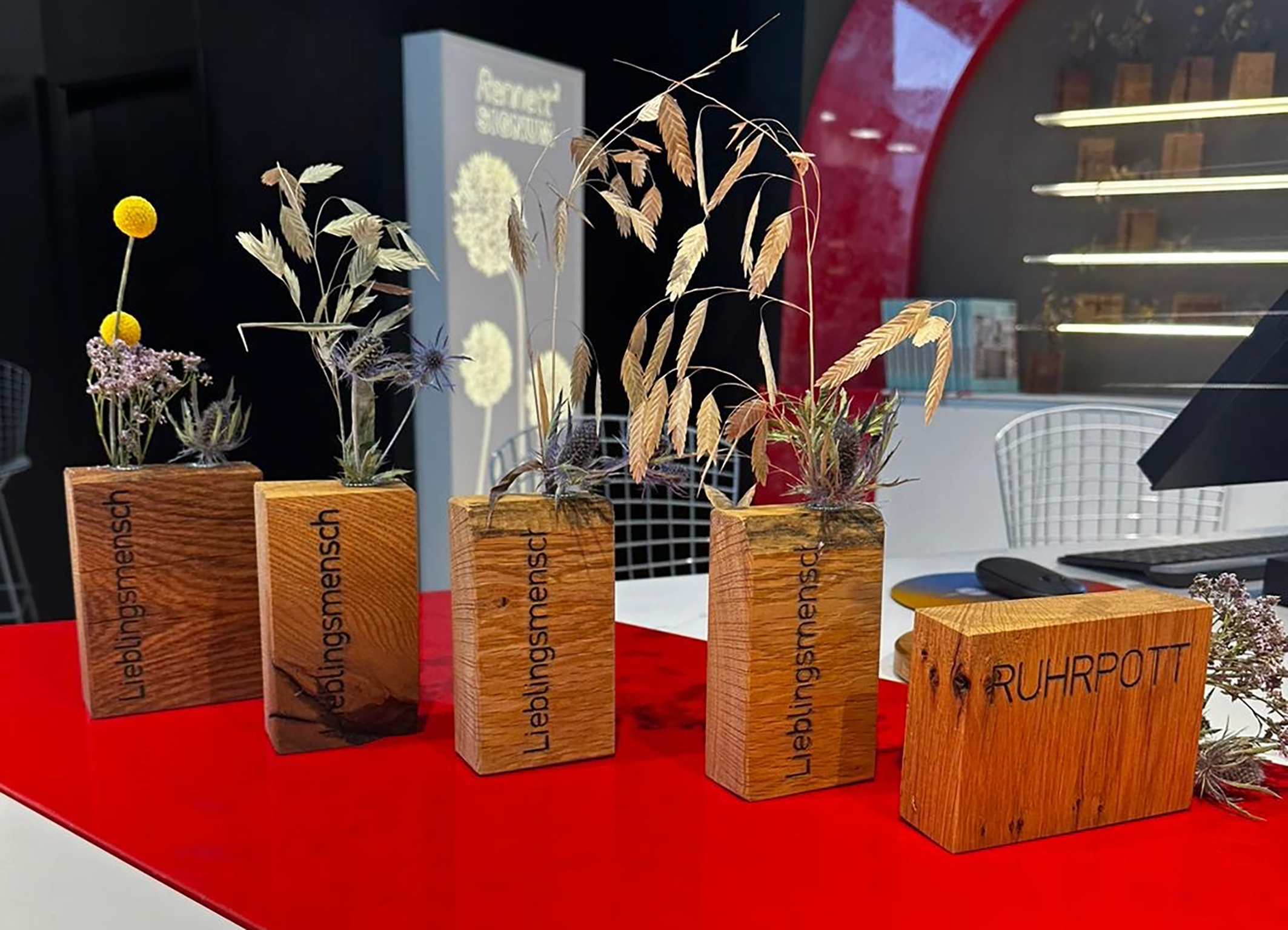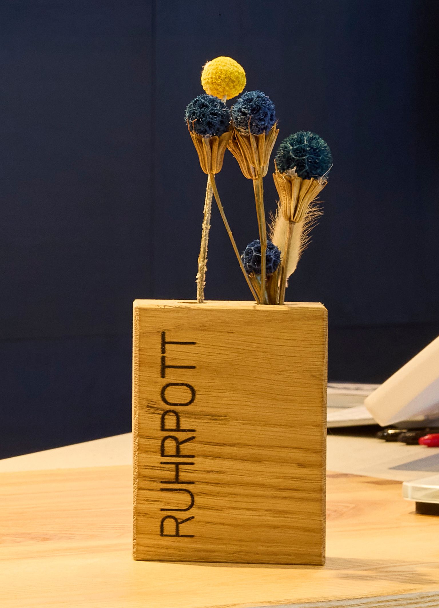 Unsere handgefertigten Holzvasen aus massiver Eiche, kombiniert mit Reagenzgläsern aus Glas in zwei Varianten. Einmal mit Schriftzug "Ruhrpott" und einmal mit dem Schriftzug "Lieblingsmensch" erhältlich. Maße ca. B100 x H 135 x T40mm. Ausführung mit 2 Bohrungen.